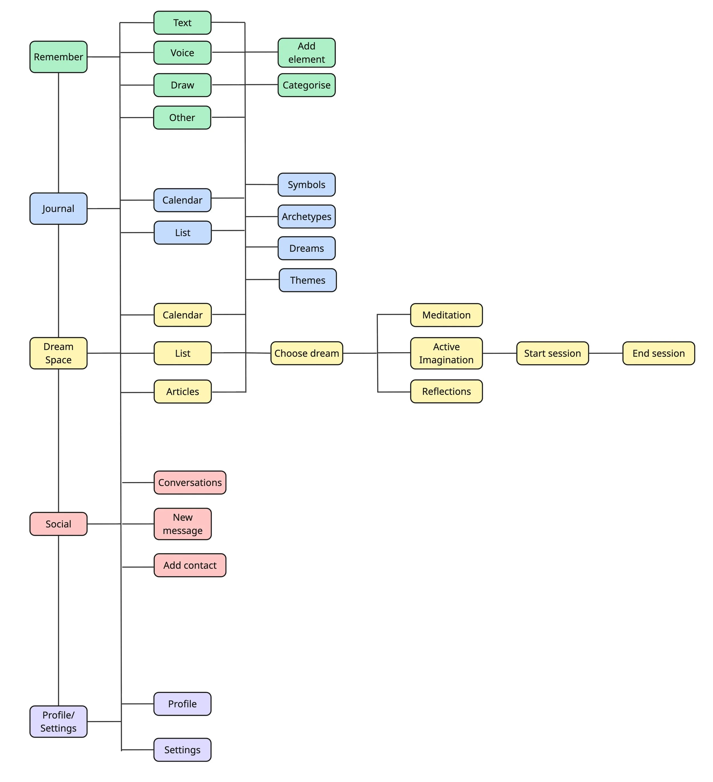 Liminal is a UX project with the aim of creating a space for exploring, investigating and engaging with the dream world. Unlike traditional dream journaling or analysis apps, Liminal emphasizes the call of James Hillman of ‘sticking to the image’. As opposed to rushing to premature analysis, this app encourages users to embrace their dreams, spending time with them, notice recurring symbols, themes and archetypal imagery.