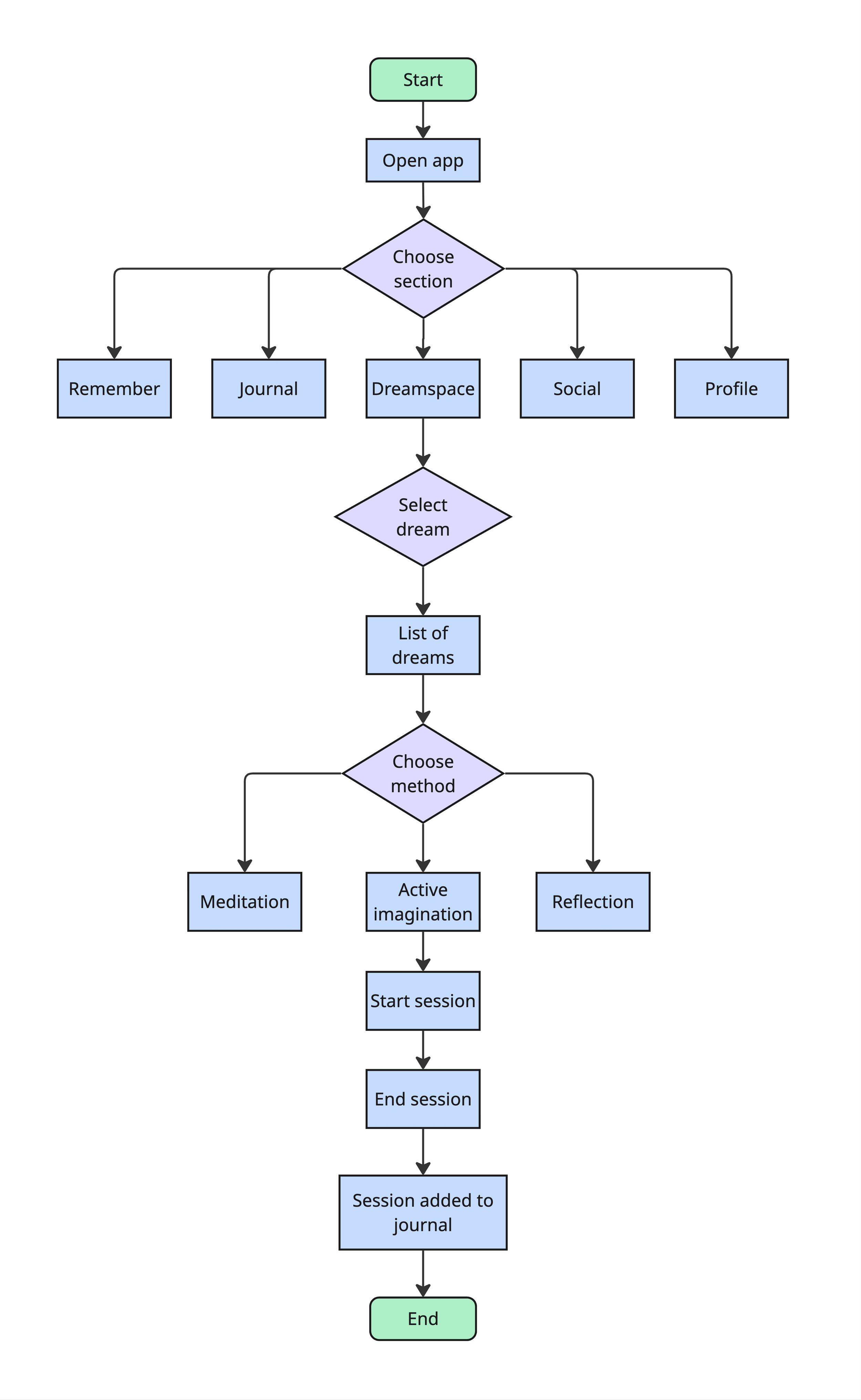 Users who are introspective, creative, or psychologically curious want a way to record and explore their dreams without being pushed into premature analysis. Current dream apps are either overly analytical, cluttered, or gamified, which disrupts the contemplative atmosphere users need. They need a calm, intuitive space that honors the imagery of their dreams, allows symbols and themes to emerge naturally over time, and supports meaningful inner exploration rather than fast interpretation.